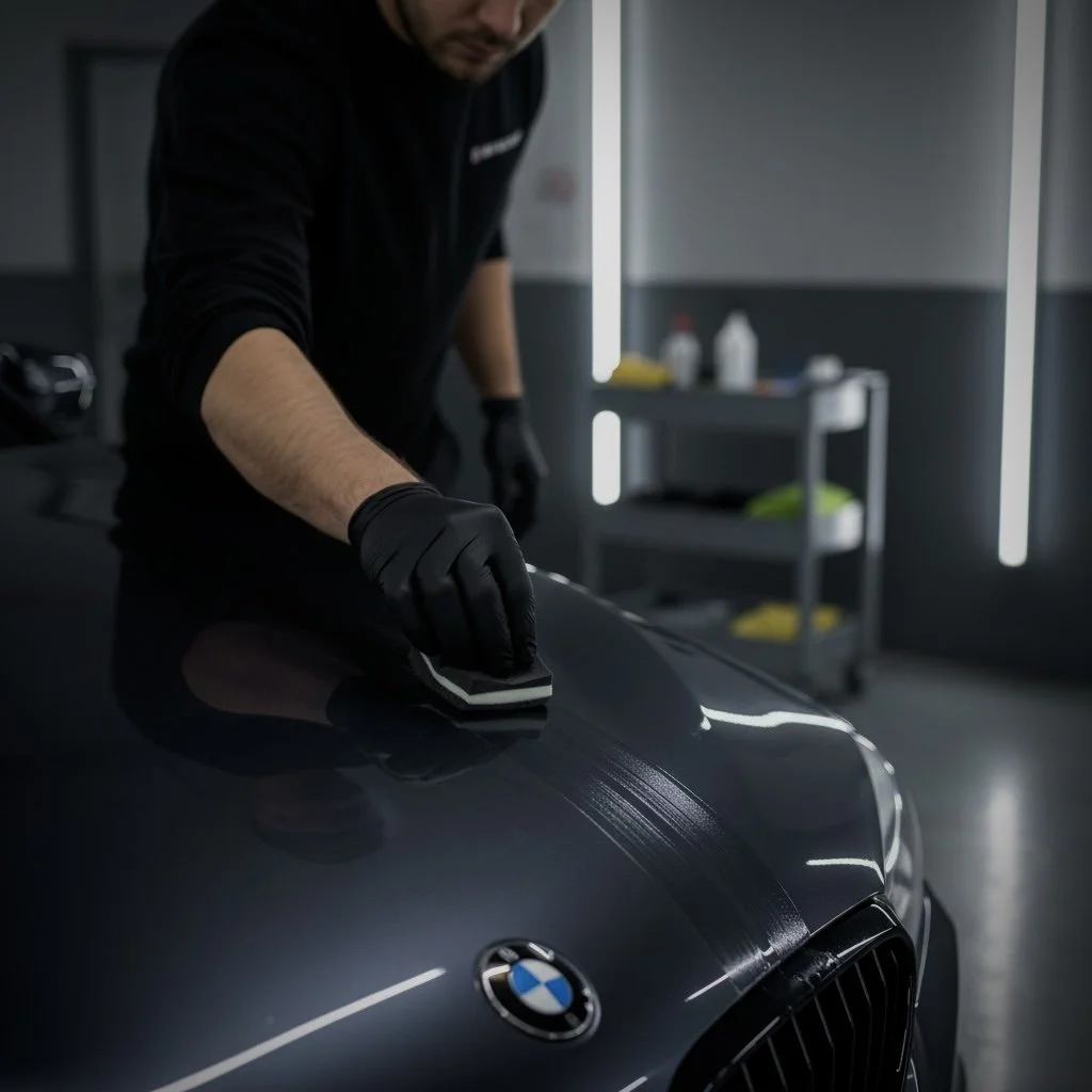 • Schleifpolitur (Entfernung von Flugrost, Baumharz & leichten Kratzern)